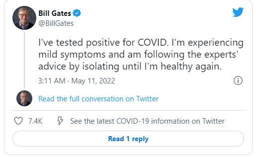 मायक्रोसॉफ्टचे सहसंस्थापक आणि जगातील सर्वात श्रीमंत व्यक्तींपैकी एक असलेले बिल गेट्स यांना कोरोनाची लागण झाली आहे. करोना पॉझिटिव्ह असले तरी सौम्य लक्षणे आहेत. त्यांनी स्वतः ट्विट करून ही माहिती दिली आहे. आयसोलेट असून बरा होत नाहीत तोपर्यंत एकाकी राहणार असल्याचं त्यांनी सांगितलं आहे. बिल गेट्स म्हणाले की, “मी भाग्यवान आहे की मला लसीकरण करण्यात आले आहे आणि मी बूस्टर देखील घेतला आहे आणि मला चांगली वैद्यकीय सेवा उपलब्ध आहे.”