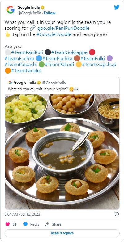 पाणीपुरीबाबत माहिती सांगताना गुगलने विविध फ्लेवरच्या पाण्याने भरलेल्या पुरीमध्ये बटाटा, छोले, मसाले आणि मिर्चीने भरलेला असतो. याशिवाय गुगलने पाणीपुरीमध्ये वापरल्या जाणाऱ्या वेगवेगळे फ्लेवरच्या पाण्याची माहिती दिली आहे.