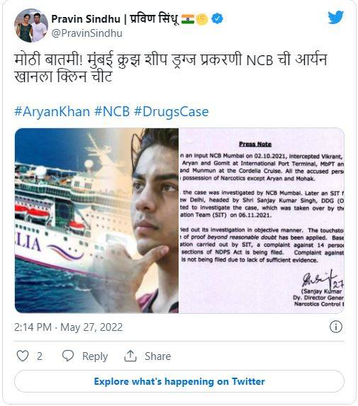 आर्यन खानला NCB ने दिली क्लीन चिट