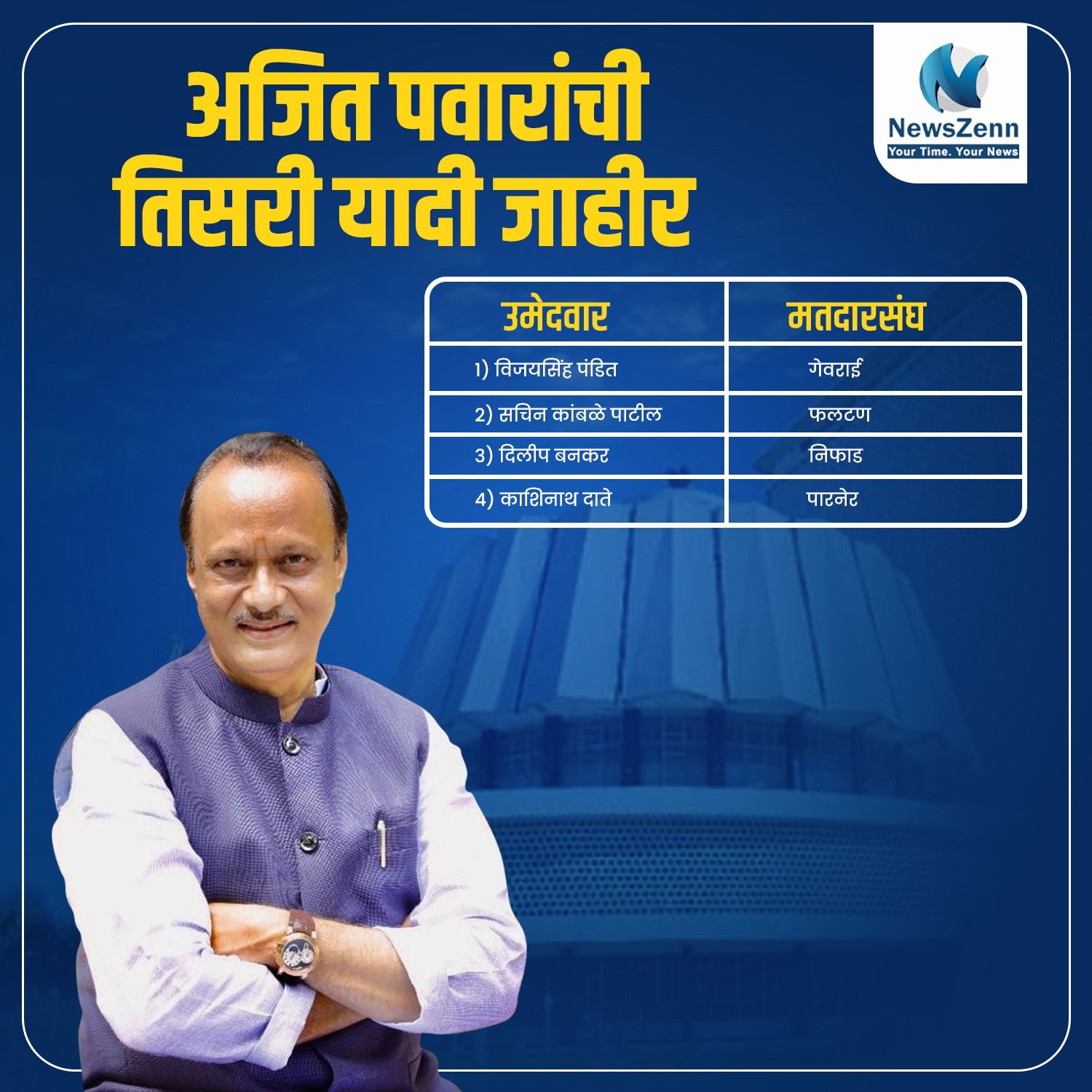 राष्ट्रवादी अजित पवार गटाची तिसरी यादी जाहीर: