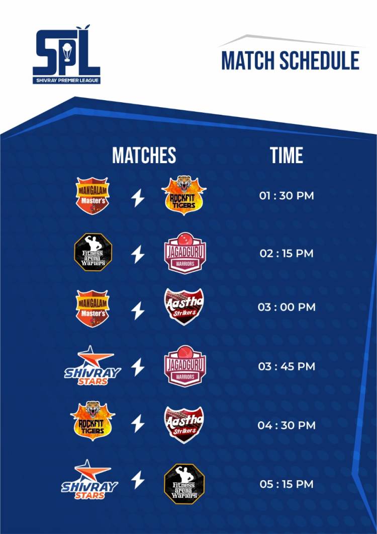 मॅचेस दुपारी १ ते ५:३० या वेळात होतील.
